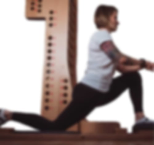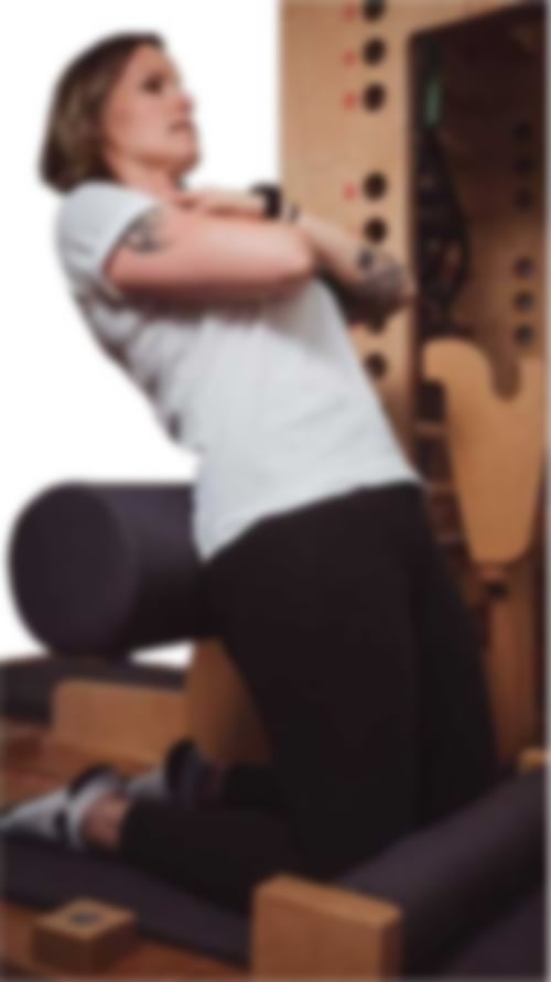 Ein Bein kniet auf dem hinteren, fixen Polster